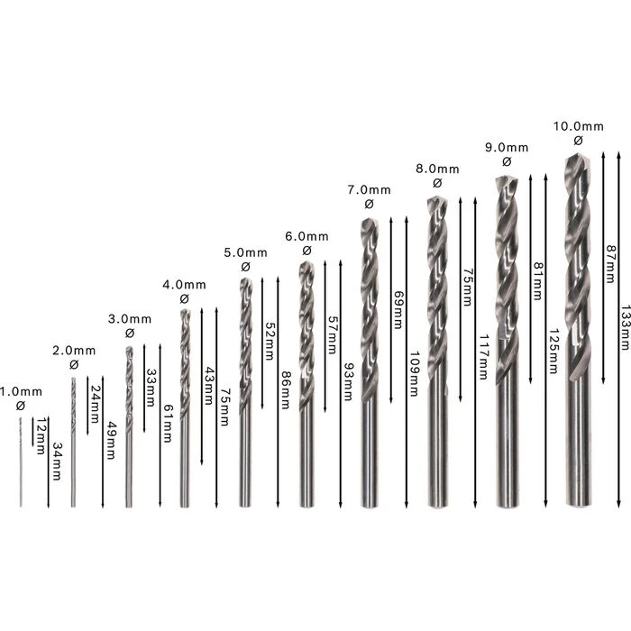 Bohr-Ø: 1 mm, 2 mm, 3 mm, 4 mm, 5 mm, 6 mm, 7 mm, 8 mm, 9 mm, 10 mm