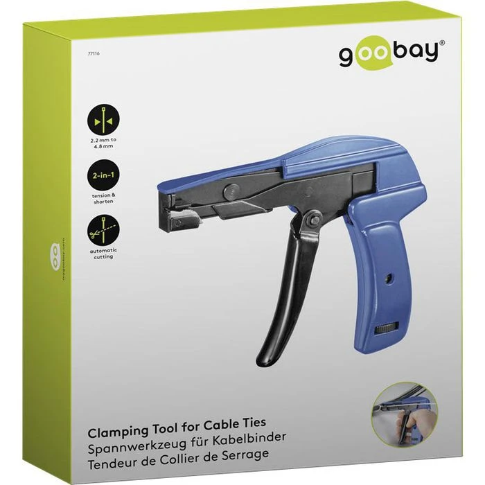 • Ergonomisches Werkzeug zum Spannen und Trennen der Kabelbinder in einem Arbeitsgang