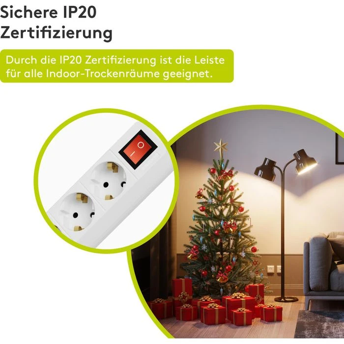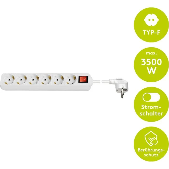 sonstiges: mit beleuchtetem Ein-/Ausschalter, 45 Grad Steckdosenanordnung, erweiterter Berührungsschutz