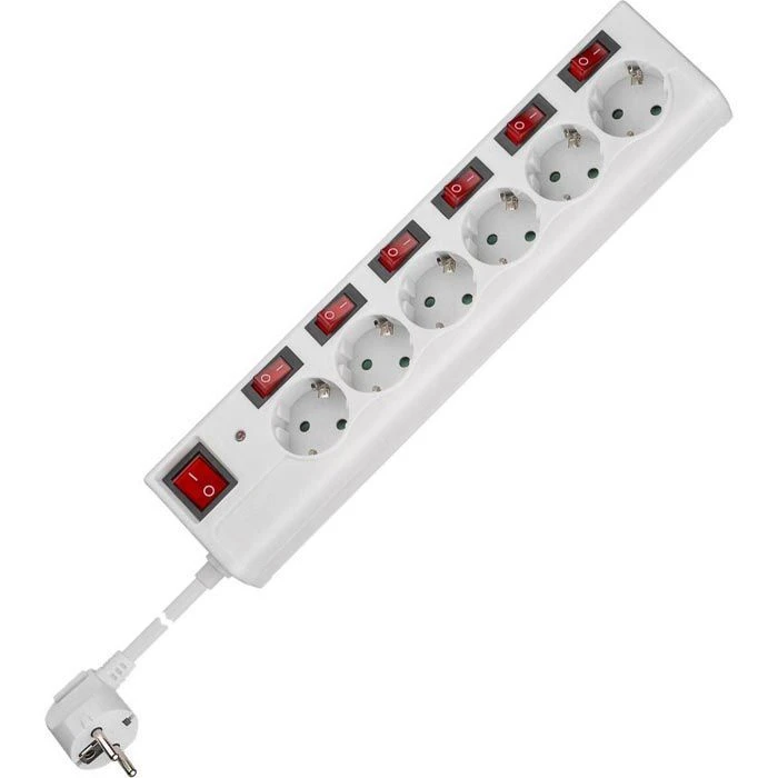 sonstiges: 6 einzeln schaltbare Schutzkontakt-Steckdosen, beleuchtete Ein-/Ausschalter, optische Funktionsanzeige für den Überspannungsschutz, 45 Grad Steckdosenanordnung, erweiterter Berührungsschutz