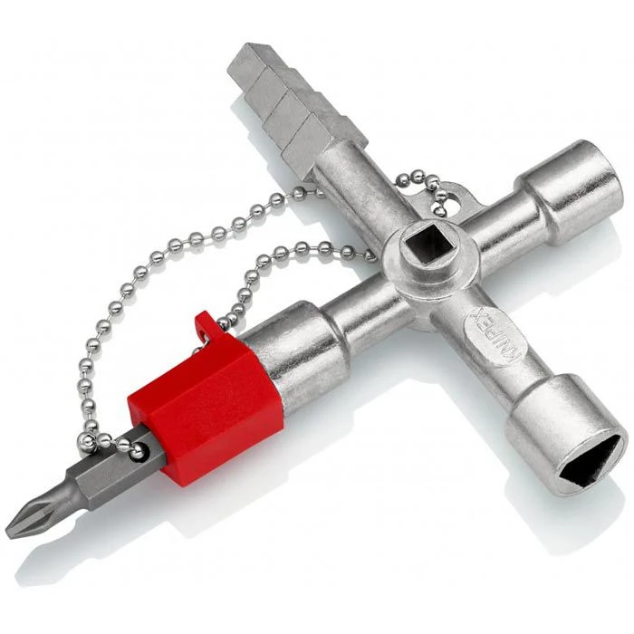 sonstiges: Schlüssel für die Bereiche Heizung-, Klima-, Sanitär- und Gebäudetechnik, mit Bit-Einsatz Schlitz 1,0 x 7 mm, Kreuzschlitz PH2 und Adapter für 1/4 Zoll-Bits an einer Befestigungskette, zusätzliche Bitaufnahme für 1/4 Zoll-Bits, Armlänge 90 mm
