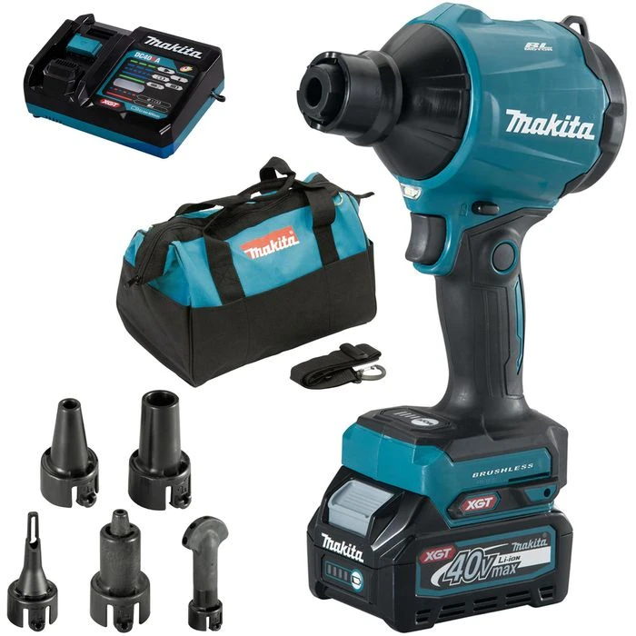 Lieferung: inkl. 1x Akku BL4020, Schnellladegerät DC40RA, 3x Düse rund, 1x Spitzdüse, 1x Breitstrahldüse, Transporttasche