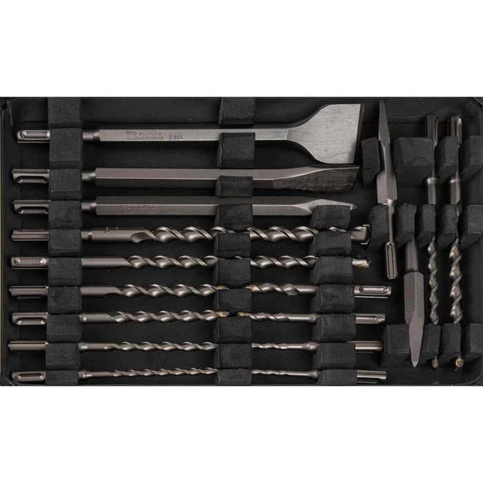 Lieferung: inkl. 17 Teilen (12 Steinbohrer, 2x Spitzmeißel, 2x Flachmeißel, 1x Breitmeißel)