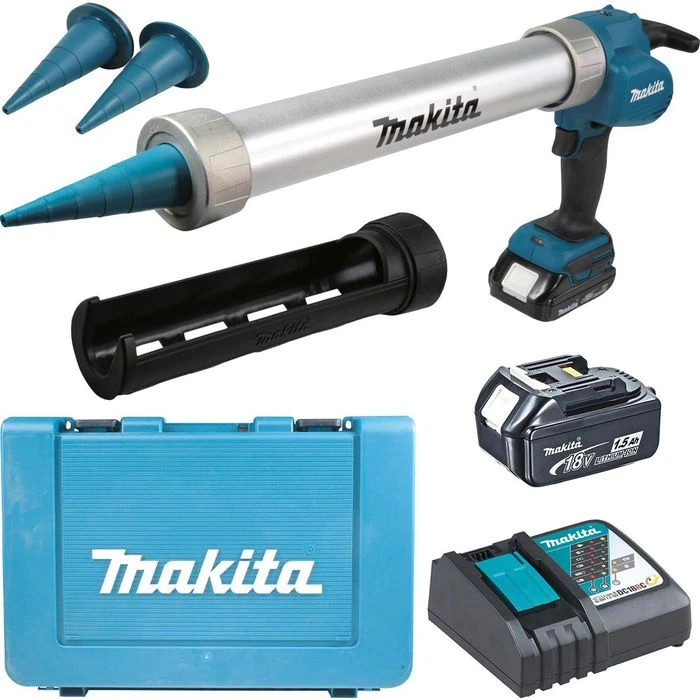 Lieferung: inkl. 2x Akku (1815N), Ladegerät DC18RC, Kartuschenhalter, Schlauchhalter, Düse, Transportkoffer (821568-1)
